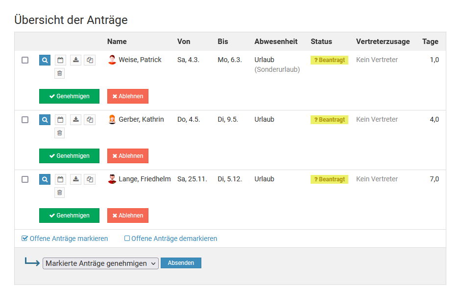 Abwesenheitsantrag genehmigen